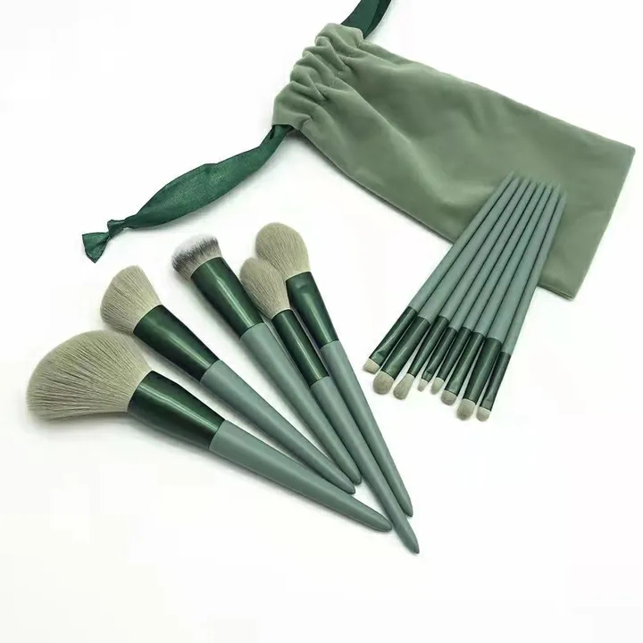 Ensemble de 13 pinceaux de maquillage (fond de teint, poudre, fard à paupières, correcteur) avec pochette de rangement Vert