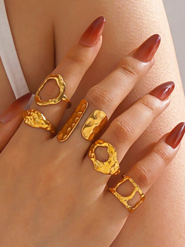 Lot de 5 bagues ouvertes géométriques minimalistes en acier inoxydable, texturées et martelées,